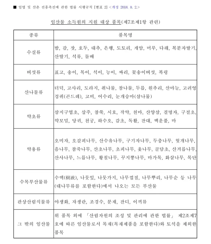 - 임산물 생산에 대한 증빙 필요.